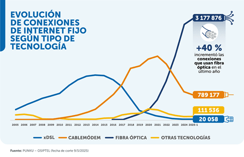Al cierre del primer trimestre de 2025, el servicio de internet fijo en Perú alcanzó un hito histórico: 4.1 millones de conexiones, lo que representa un crecimiento interanual del 11.9 %. Este avance, aunque alentador, también redefine las reglas del juego para los operadores locales.