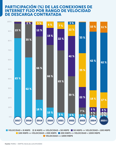 - El 91 % de usuarios ya contrata planes de 100 Mbps o más.